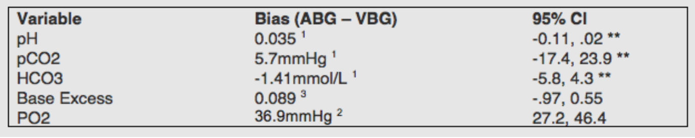 • Many studies have been conducted in both ED and ICU populations to assess the correlation of VBG to ABG values
