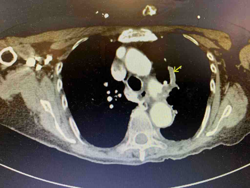 Given the above bedside ultrasound, there was concern for PE as the cause of the patient’s hypoxia. CTA was obtained and showed bilateral segmental PE’s.