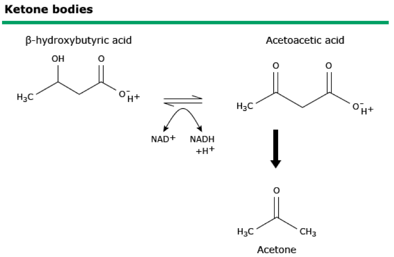 - Ketogenesis and the formation of acetoacetic acid, acetone or beta hydroxybutyric acid