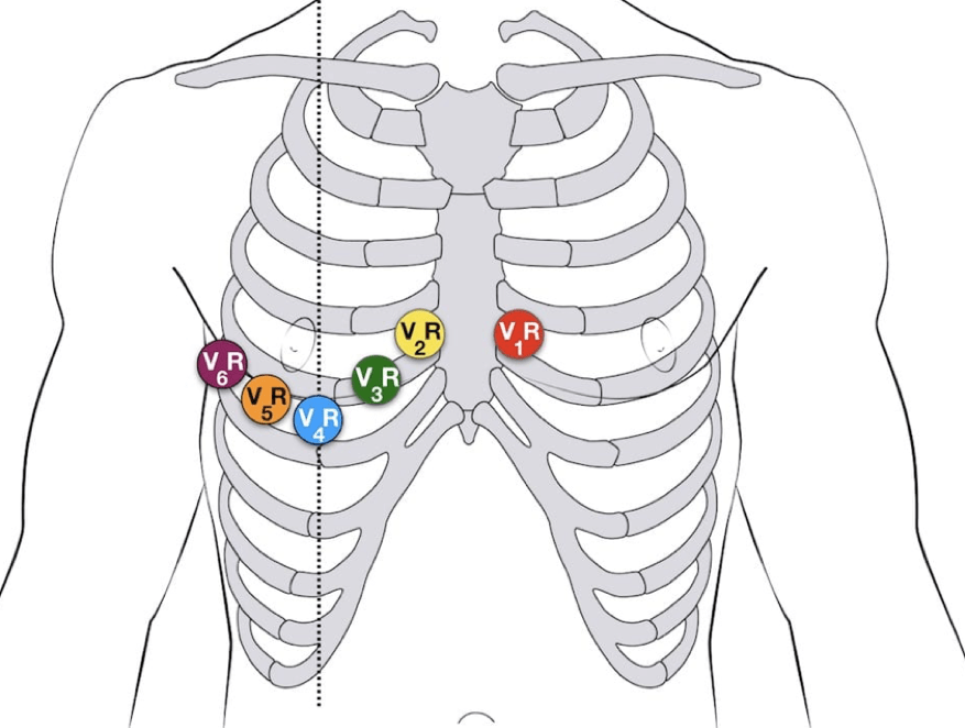 These are not the same as right sided EKG’s. A right sided EKG is performed like this: