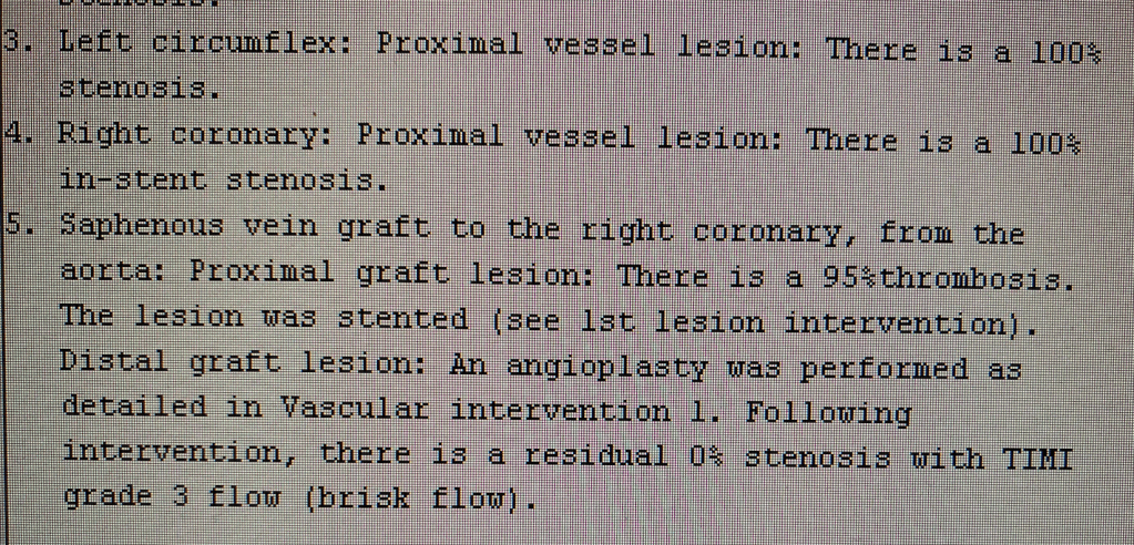 Based on his concerning history and these echo findings, even with a normal EKG cardiology decides to take the patient emergently to the cath lab. His cath shows: