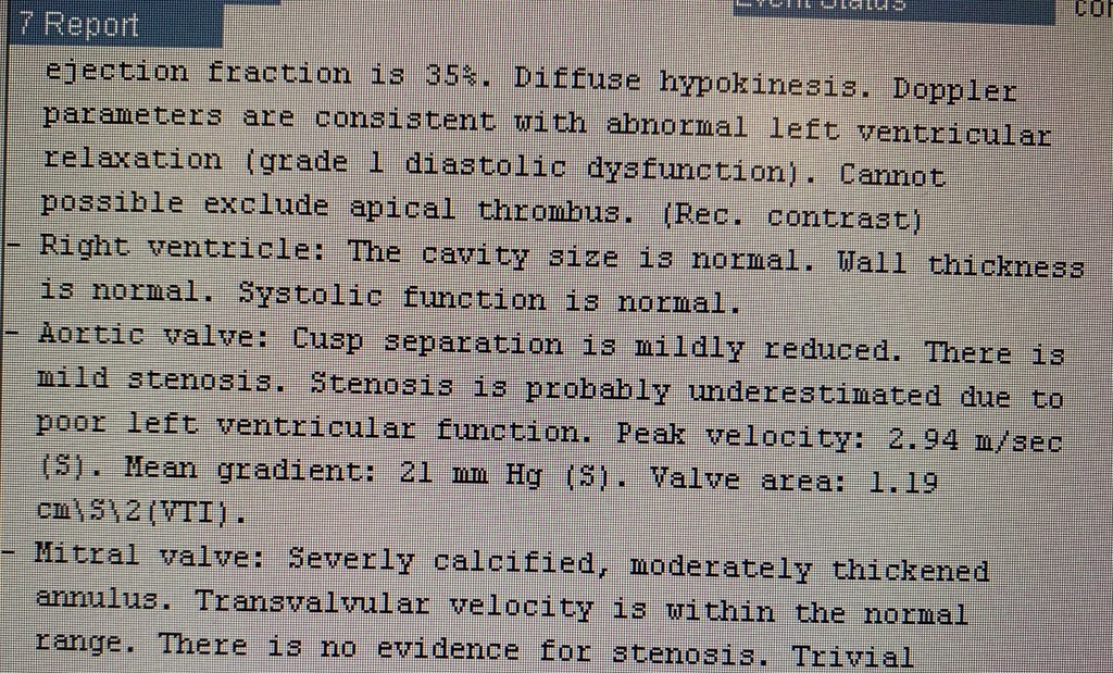 The bedside echo shows a reduced ejection fraction and looking through your records this is new when compared to his last echo.