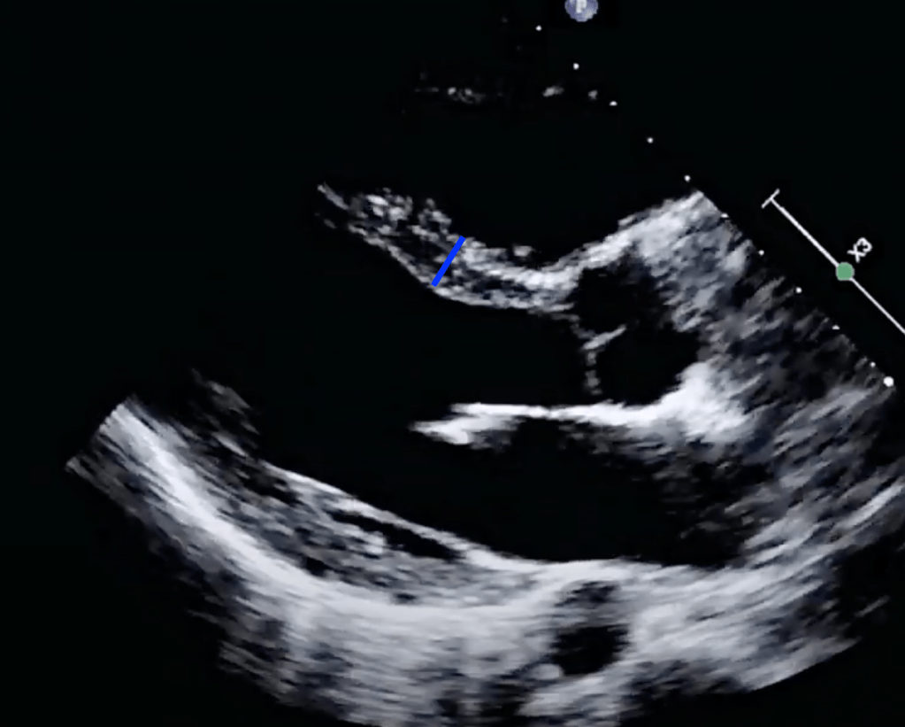 Looking at the initial EKG, you are concerned that this is possibly Wellens syndrome with Wellens waves in V2 and V3. While awaiting for cardiology to arrive, you obtain a bedside echo: