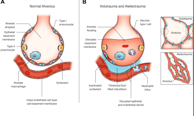 - Every time alveoli collapse and re-expand, it exposes the alveoli to a shearing stress causing damage to alveolar wall
