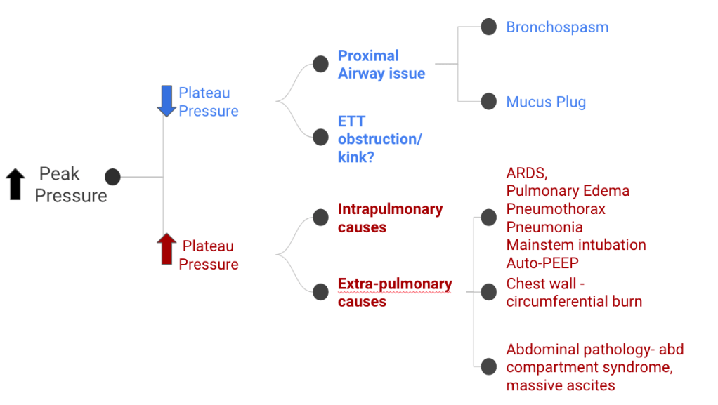 - Peak pressures alone are not helpful, and should always be compared to plateau pressure.